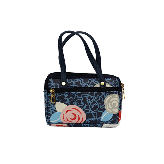 Floral Mini Handbag for Women with Dual Handles and Zipper Compartments