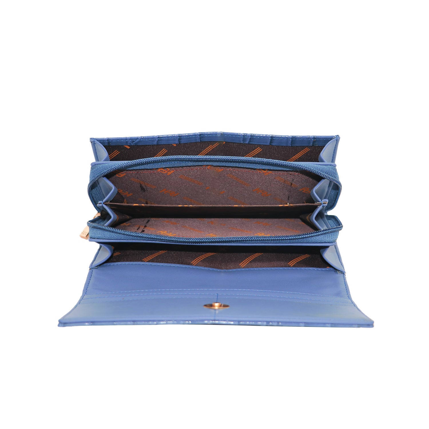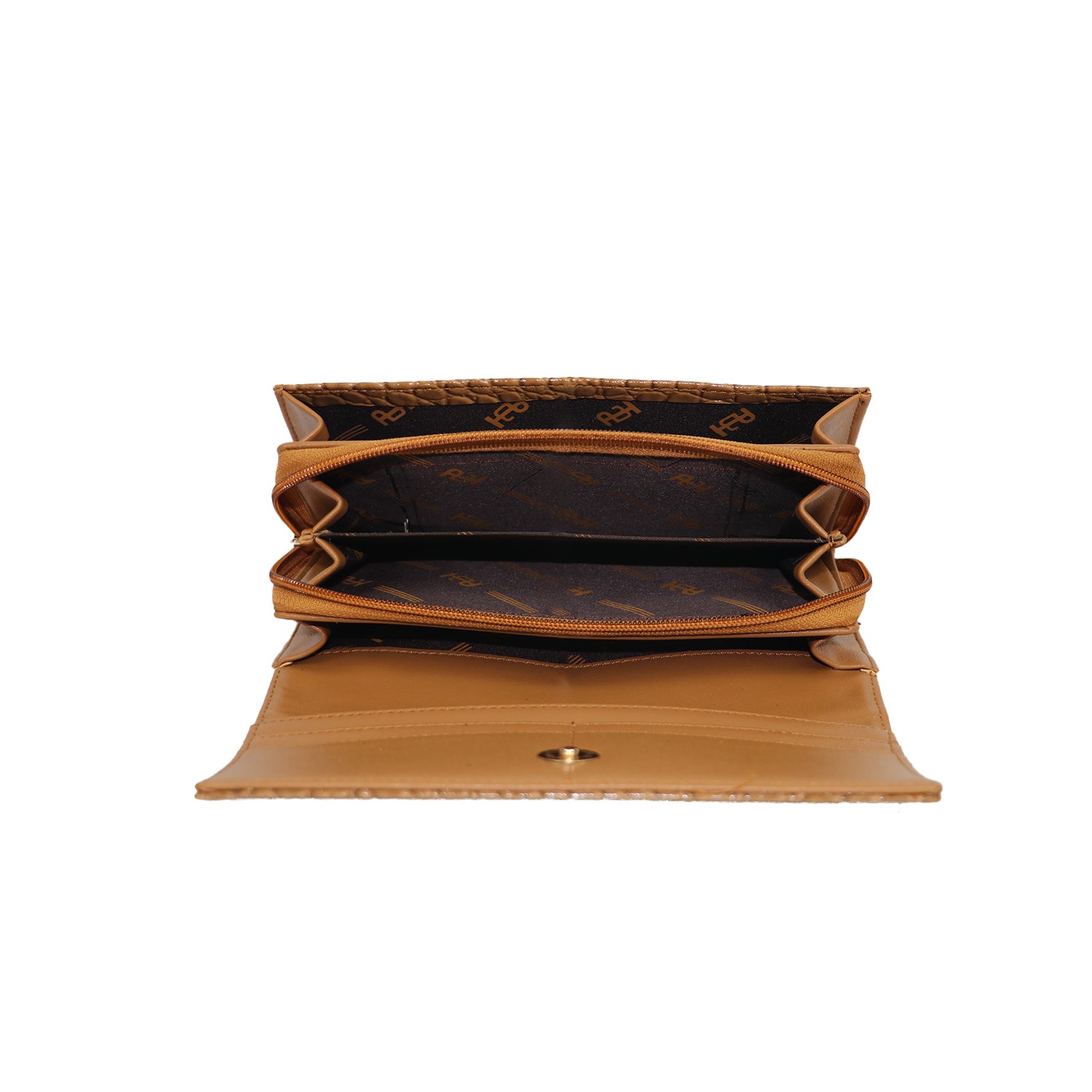 A sleek and functional wallet clutch with elegant texture and organized storage