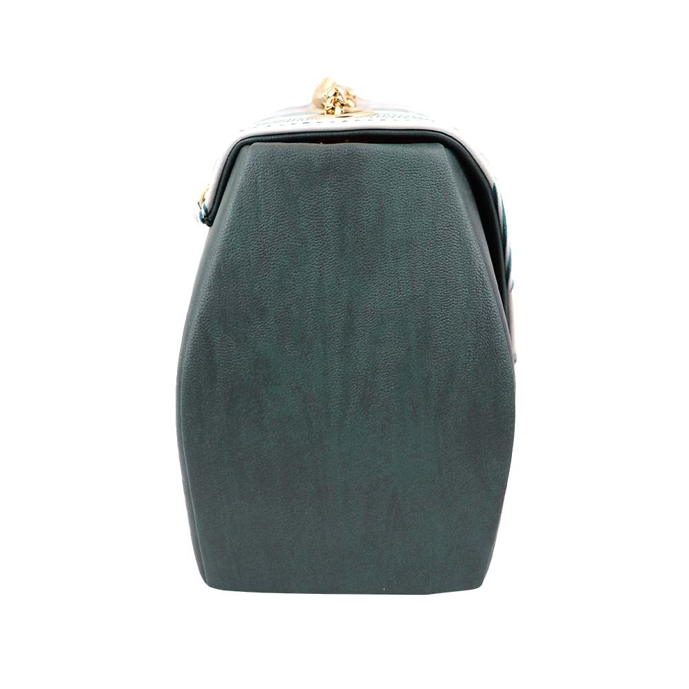 A stylish and compact women's sling bag designed for everyday elegance and party use. This handbag features a dark green body with a trendy patterned flap and gold chain strap, adding a premium fashion look.