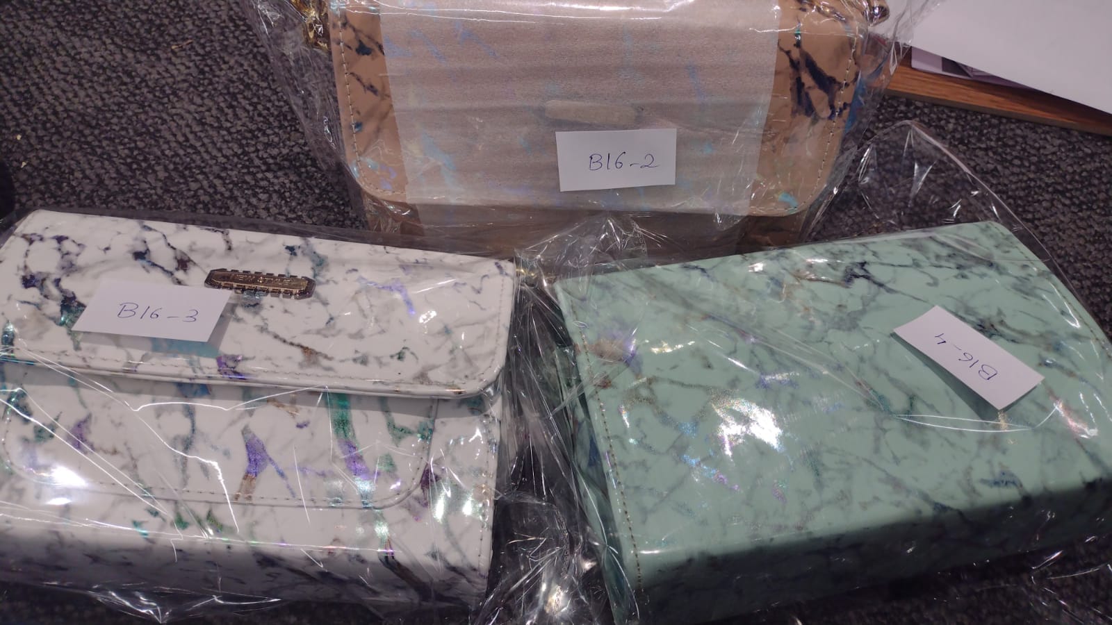 Elegant embroidered clutch handbag designed for special occasions and party wear. This stylish handbag features intricate embroidery with decorative embellishments that give it a luxurious festive look.