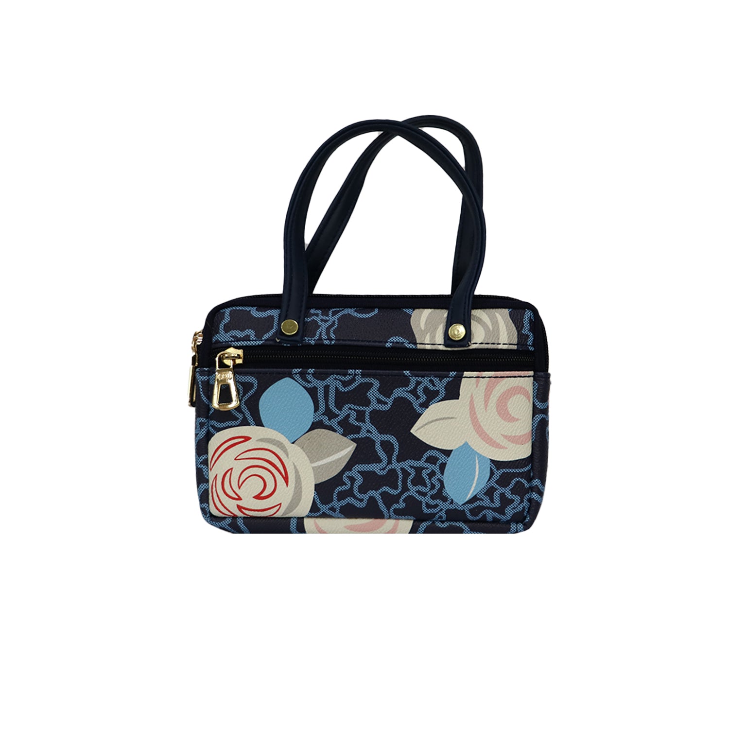 Floral Mini Handbag for Women with Dual Handles and Zipper Compartments