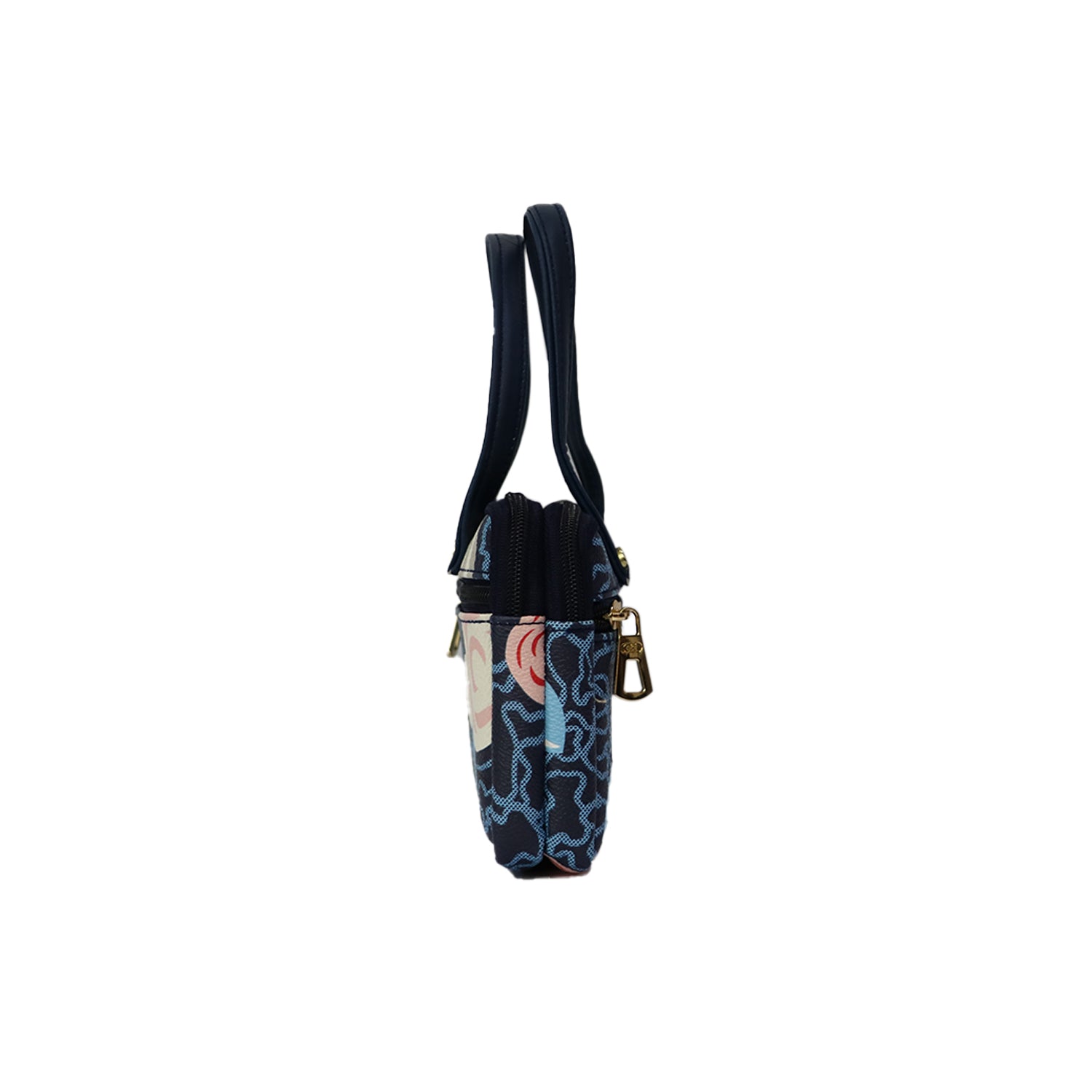 A compact and stylish navy floral mini handbag designed for women who prefer elegance with functionality.