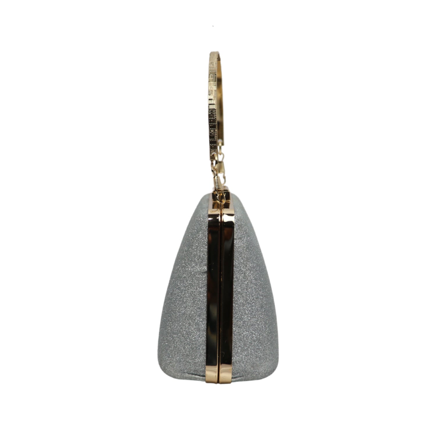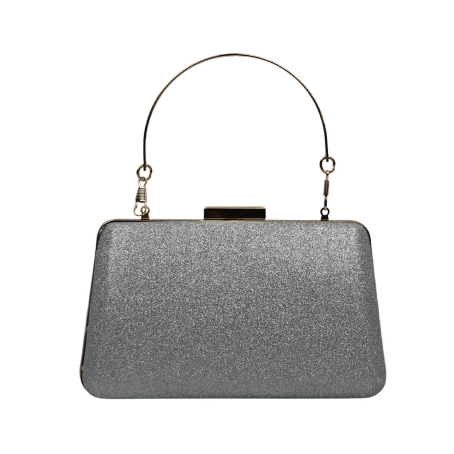 Glitter Party Clutch with Metal Handle and Chain Strap – Elegant Evening Handbag