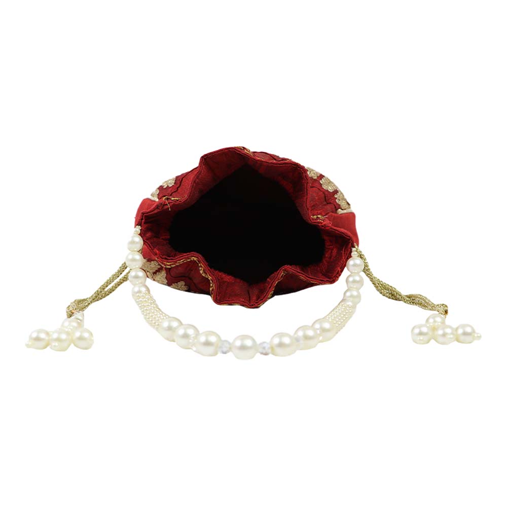 Elegant Embroidered Potli Bag with Pearl Handle