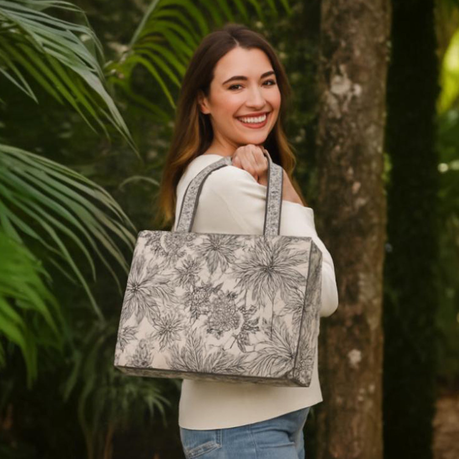 Sleek, striking, and sophisticated—this Monochrome Jungle Tote is a wearable piece of art. Featuring a detailed black-on-white jungle scene with a majestic leopard, the bag delivers timeless style in a neutral color palette.