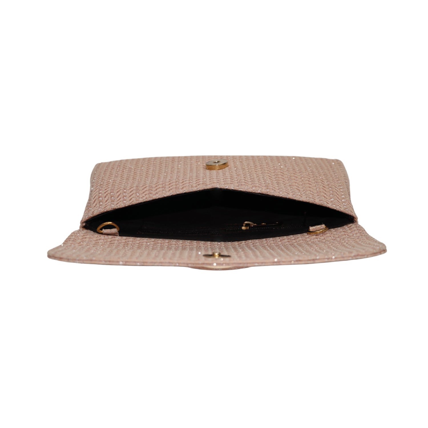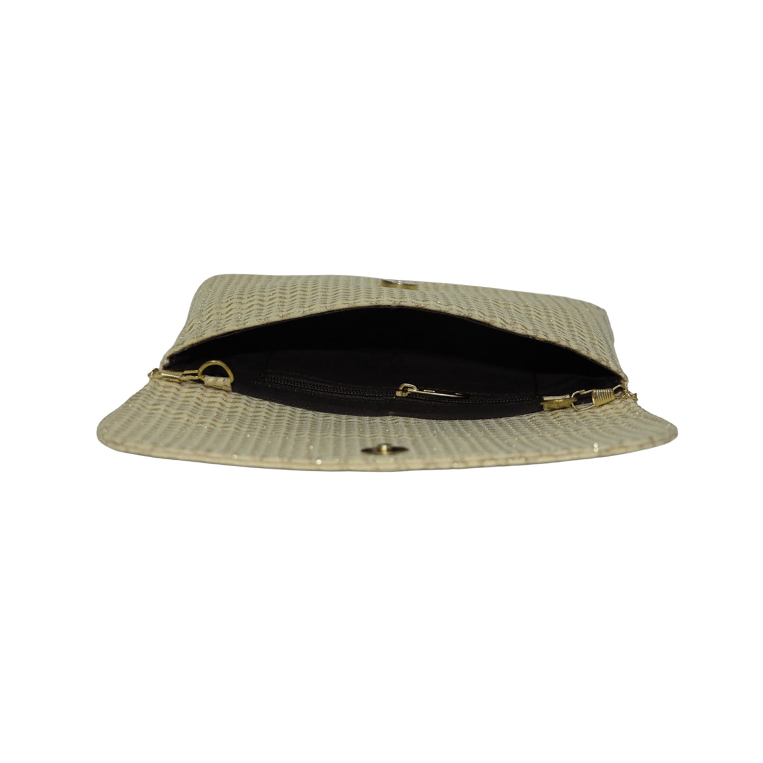 An elegant beige patterned clutch designed for women who prefer sophisticated and minimal accessories.