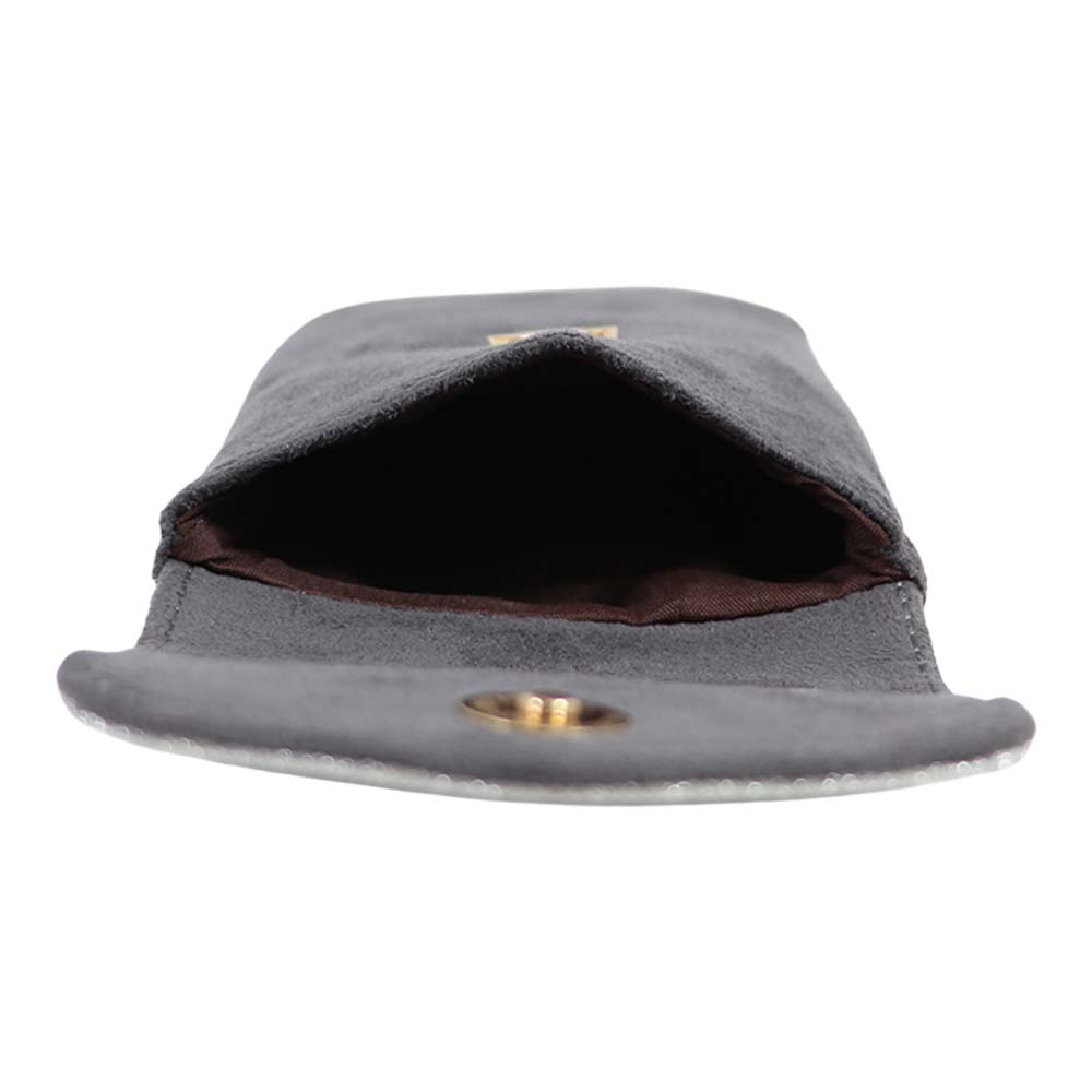 Step out in style with this chic sling pouch, perfect for adding a touch of glamour to your outfit. The pouch features a soft black suede-like texture paired with a shimmering silver flap adorned with a heart-shaped charm.