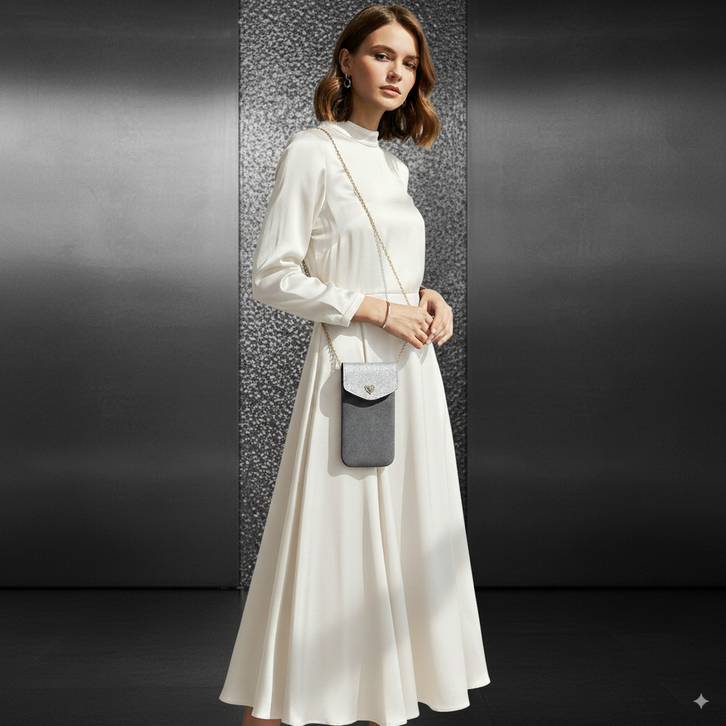 - Sling design for easy, hands-free carrying, perfect for evening events and parties.