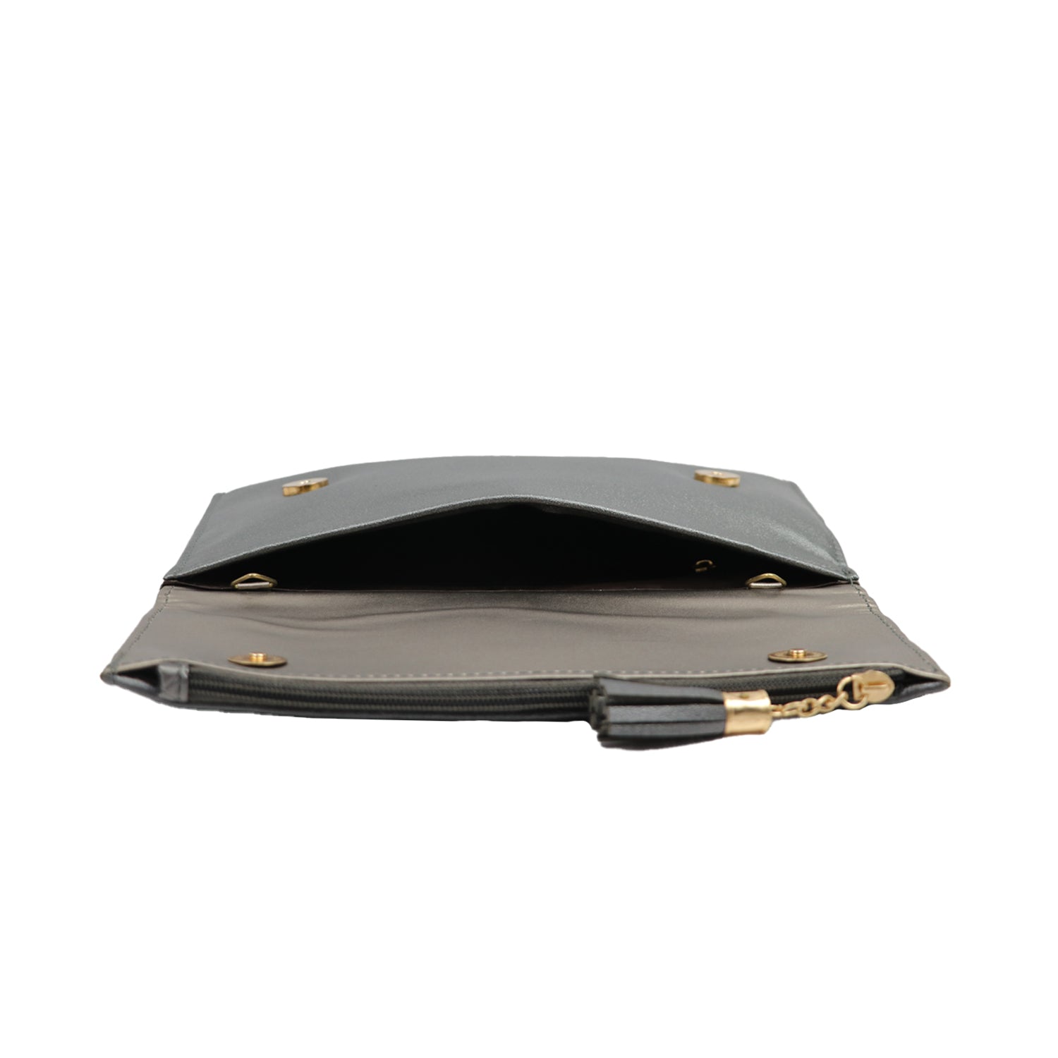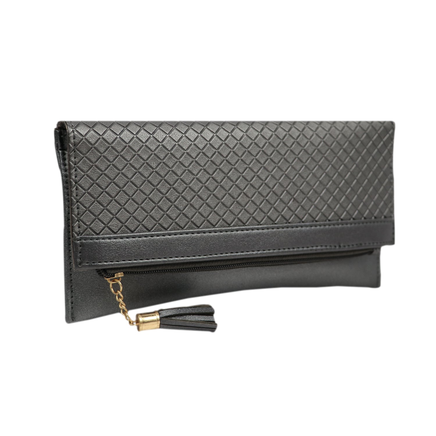 Textured Clutch Wallet with Chain Strap and Tassel Zipper Pocket