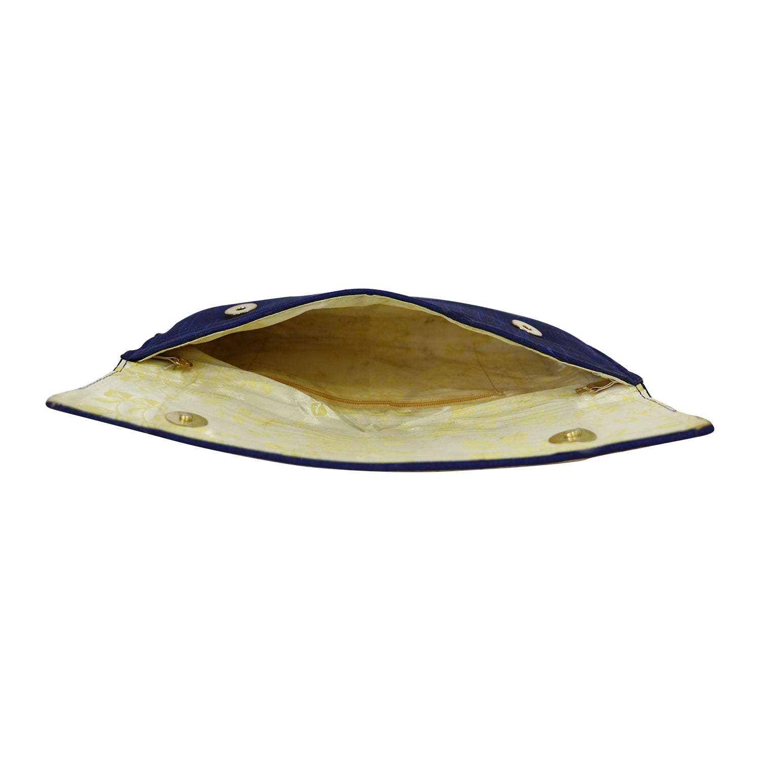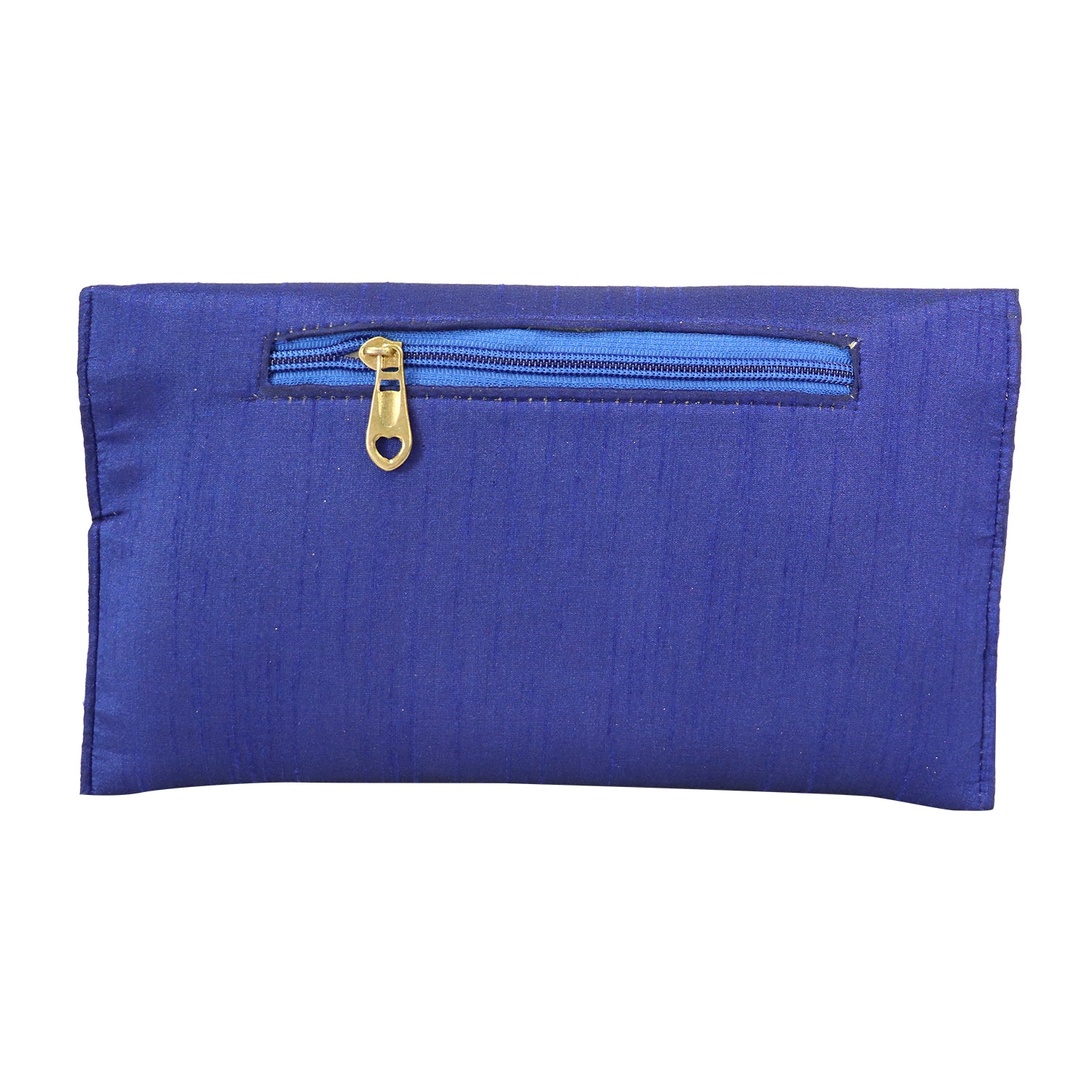 A premium blue clutch designed with a unique woven flap pattern that adds texture and elegance. The structured body combined with a detachable chain strap makes it perfect for both handheld and sling styling.