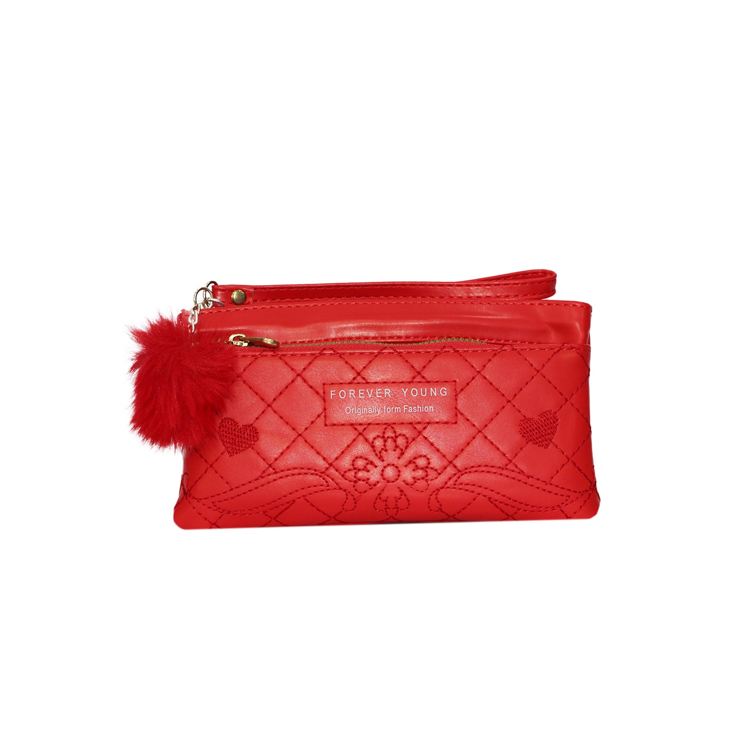 Wristlet Cosmetic Pouch Makeup Organizer with Zipper and Pom Pom